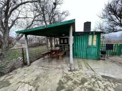 На участке располагается летняя кухня. Есть сарай, курятник, уличный летний душ, уличный чистый туалет. Растут плодоносящие деревья: персик, черешня, абрикосы.