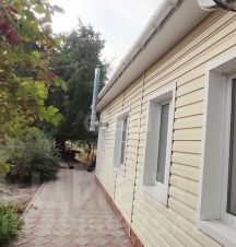 Дом саманный, обложен красным кирпичом, обшит сайдингом - толщина стен = 70 см., что гарантирует тепло - зимой и прохладу - летом. Окна пластиковые, отопление газифицированное, крыша новая металлочерепица.