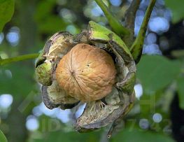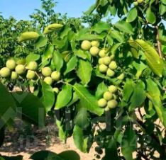 На участке в 16 соток высажено много плодовых деревьев и кустарников: грецкий орех, абрикосы - 2 больших дерева, шелковица (тутовник), груши различных сортов, молодые персики, калина, смородина (черная + красная), малина - (дает несколько урожаев в сезон - до октября), крыжовник, клубника и несколько сортов винограда.