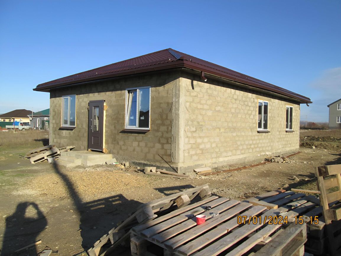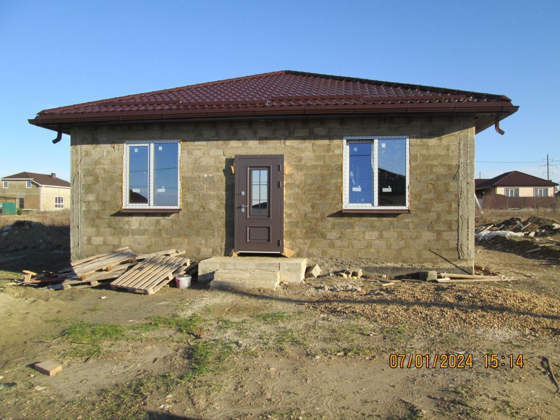 Продам дом на стадии строительства в станице Раевская. Наружные стены из 32-го керамзитового блока. Утепление фасада запланировано толщиной 90мм. Межэтажное перекрытие - ж/б монолит, толщиной 17 см. То есть, при желании можно легко надстроить второй этаж, фундамент и заливался с этим учётом. На данном этапе имеются внутренние перегородки, электроснабжение 15 кВт, септик, водяная скважина глубиной 70 м, произведена внутренняя разводка электричества. Есть выход на террасу. Установлены качественные трёхкамерные стеклопакеты. Установлена дорогая, красивая и качественная входная дверь. Общая площадь дома - 103 кв.м. Имеются все документы на землю и дом. Цена актуальна на данный момент. С продолжением строительства, стоимость, естественно, будет расти. Собственник. Будут вопросы - пишите, звоните. Всегда на связи.