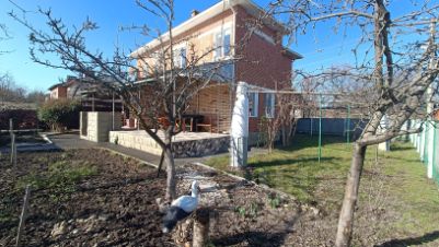 Во дворе газон и собственный сад (яблоня, груши, черешни, инжир, абрикос, айва, вишня, слива, алыча, калина, малина, клубника, смородина чёрная и красная).