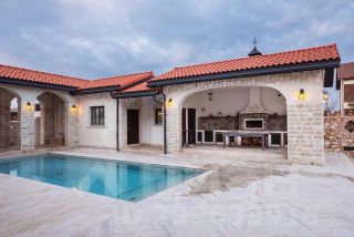 Максимальное использование в строительстве только качественный и натуральный материал: черепица ручной формовки LA Eskandella, окна стеклопакет натуральное дерево дуб, стены кирпич, архитектурные элементы фасада и интерьера натуральный камень, забор по периметру 160 м. натуральный гранит. - В ландшафте использовано более 80-ти тонн мраморной и гранитной крошки и камня. -Собственная скважина с водой, собственный генератор.