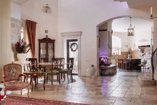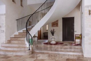 Дом выполнен по авторскому дизайн-проекту MARCH DESIGN город Санкт Петербург. Детали интерьера нестандартные, эксклюзивные, изготовлены по эскизам архитектора специально для этого дома. Альфрейная роспись по Флорентийским мотивам, высокие потолки, антикварная мебель. В отделке использованы: камень, дерево, стекло, травертин, известково-декоративная штукатурка на потолки и стены .
