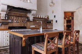 На первом этаже расположен кабинет, кухня с камином, столовая, комната отдыха, гостевой с/у, котельная. Особое внимание уделено помещениям для хранения, которые вписываются не как бытовые комнаты, а помещения с продуманным интерьером, удобством и дизайнерскими решениями. При планировке дома, учитывались не общепринятые принципы расположения, а максимальный комфорт, удобства в быту. Результат - уют, чистота (вещи всегда на своем месте), отсутствие ощущения громоздкости дома, логическое расположение всех предметов и вещей. Куда бы вы не зашли, будь то спальная комната или погреб или гардеробная или кухня или с/у, вы будете находится в комфорте и уюте.