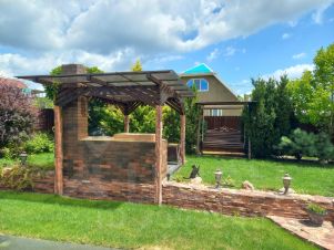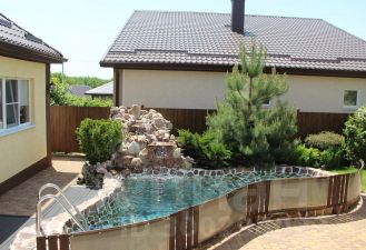 Благодаря выполненному ландшафтному дизайну, на участке каждое дерево и кустик создают уют и красоту. Бассейн с фонтаном радует не только детей, но и взрослых. Детская площадка надолго займет детей. Зону барбекю высоко оценят любители блюд на мангале и в казане, ведь здесь продумано все до мелочей.
