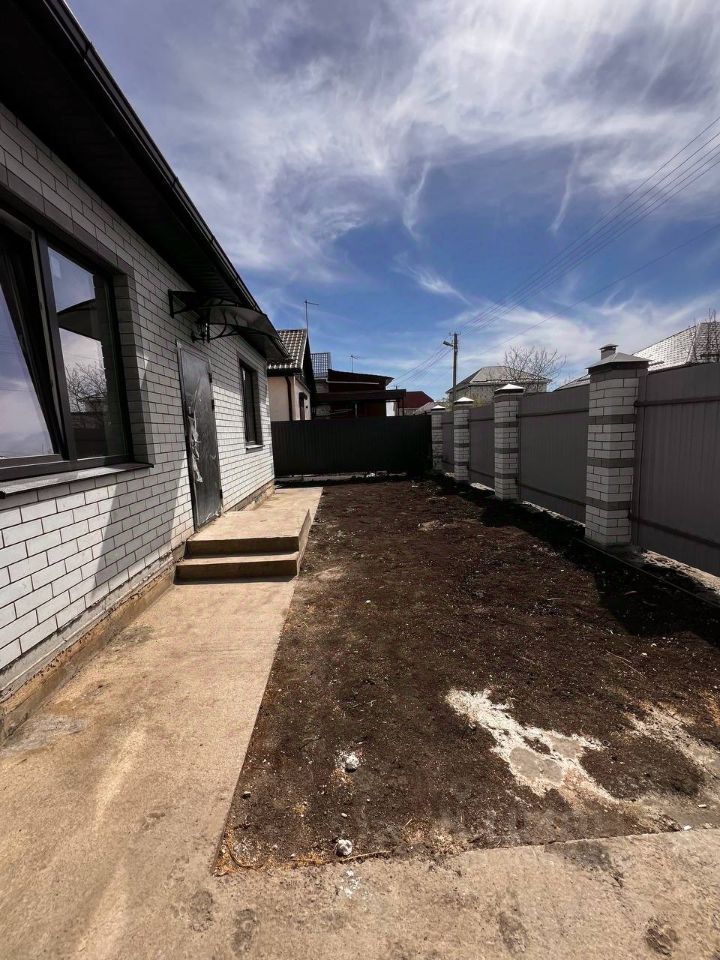 Участок правильной квадратной формы, с большой территорией заднего двора за счет правильного расположения дома. Забетонировано место под заезд двух-трех машин. Есть крытая терраса , по периметру дома сделана отмостка. Ворота откатные. Из коммуникаций в доме есть : свет 15 кв, газ проходит по меже , свет.