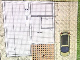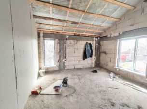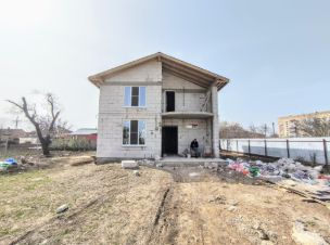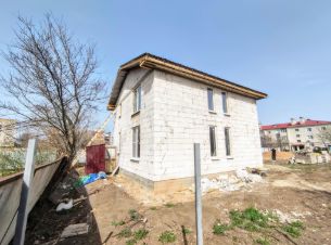 По проекту: двухэтажное домовладение, кровля - металлочерепица, фундамент - двойное армирование. Второй этаж состоит из двух комнат раздельного расположения, гардеробная, совмещенный с/у, незастекленный балкон. На первый этаж ведет деревянная лестница. Первый этаж состоит из кухни-гостинной, гардеробной, совмещенного с/у и коридора. Выполнен монтаж электропроводки во всех комнатах, а также монтаж труб канализации и водопровода по всему дому. Частично, установлены металлопластиковые окна (часть будет панорамные). Отопление - газовый котел. Входная дверь - металлическая. Центральная канализация.Земельный участок, примерно, 5,7 соток.