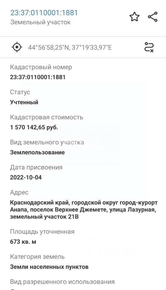 Участок общей площадью 6,73 сотки в ближайшем пригороде города-курорта Анапа, поселок Верхнее Джемете . Отличительная особенность поселка своими видовыми характеристиками на город курорт Анапа и Черноморское побережье.