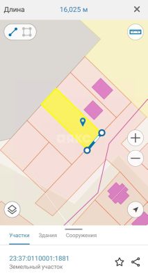 Участок правильной прямоугольной формы с фасадом 16 метров .