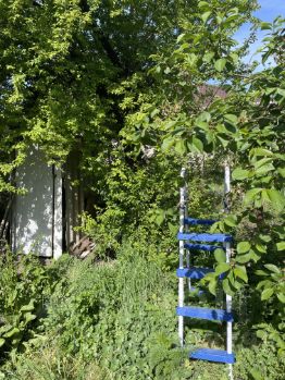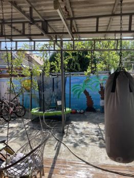 Во дворе два навеса и хозпостройки (уличный туалет, уличный душ, садовый домик).