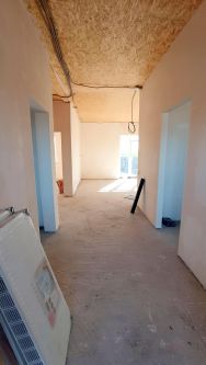 Внутри выполнена предчистовая отделка, стяжка, штукатурка, полная электро и сантехническая разводка по всему дому.