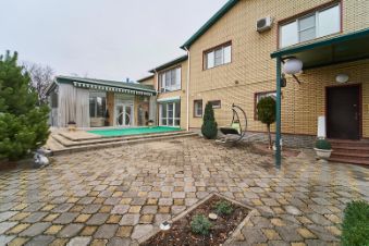 Территория облагорожена, красиво украшают двор хвойники, магнолия Суланджа, бересклеты, самшит и др. Во дворе выдвижная электрическая маркиза, в яркую, солнечную погоду прекрасно создает тень. На окнах установлены роллеты, установлена сигнализация "Альфа-Нева", тревожная кнопка, видеонаблюдение по периметру. При отключении света бесперебойное питание на 5 кВт с аккумуляторами(переключение 0,03 сек.) В доме установлен интернет (оптоволокно) 100 мБит, WI-FI. В доме имеется подвал. Два встроенных гаража 48м2 и 20м2 соответственно.