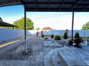 Дом из качественных материалов, 2013 года постройки, хорошее состояние, но нужен косметический ремонт. Просторный зал, 3 изолированные комнаты, санузел, кухня-столовая 21 кв.м. с выходом на участок. Металлопластиковые окна, металлическая дверь. Остаётся сантехника, люстры, шторы, 2 сплит-системы. Большой двор, на 3-4 лег., авто, большой навес. Впереди дома терраса под навесом, сзади запланировали, но не сделана. Залит фундамент под гараж, баню, зону барбекю, капитальный прохладный подвал 9 кв.м., изолирован от воды. Земельный участок 9 соток, фасад 18 м, ИЖС. Плодоносящий сад: черешни, вишни, инжир, абрикос и т.д. Теплица из поликарбоната 4м*6м. Забор по периметру, откатные ворота, калитка.