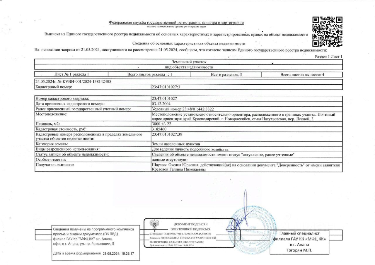 Кадастровый номер участка 2***:47:0101027:*** указал продавец
