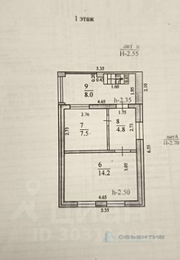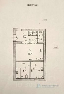 1 этаж: коридор (6,2 кв.м.), гостиная (13,4 кв.м.), кухня (6,1 кв.м.), совмещенный с/узел (6,4 кв.м.), бойлерная (1,6 кв.м.).
