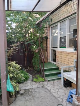 Территория облагорожена. много растений, передний двор выложен брусчаткой, на задний двор есть отдельный выход с кухни.
