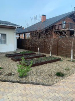 Земельный участок: Участок 6 сот. правильной формы, грамотно распланированный, ухоженный. Фруктовые деревья, грядки, газон, автополив, скважина.
