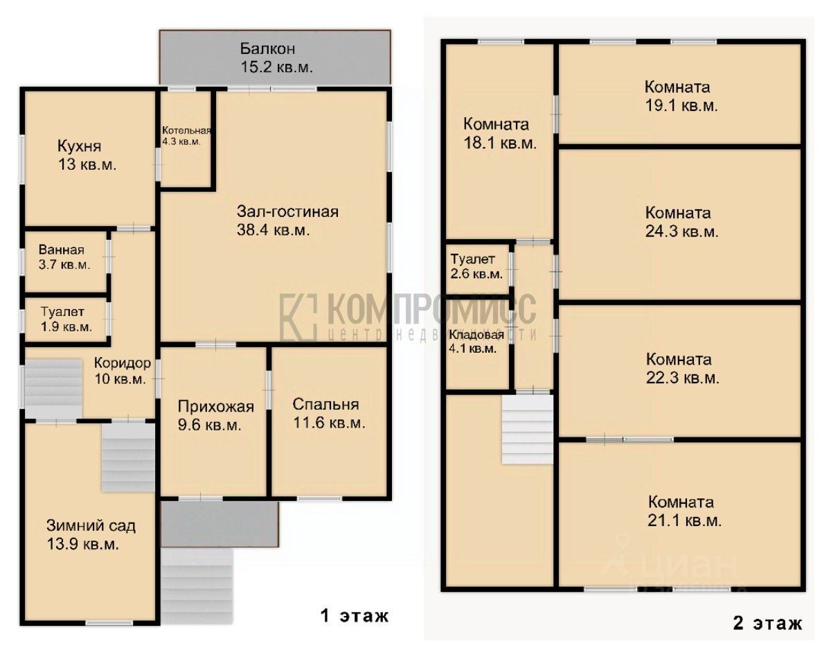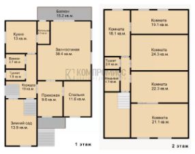 На 1 этаже: зал-гостиная, спальня, кухня, раздельный с/у, балкон, прихожая, коридор, котельная и даже зимний сад!