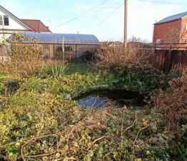 На участке 10 соток имеются: двор, где поместятся 2 авто, небольшой пруд, 2 теплицы и готовые грядки, сад из яблонь, груш, большого инжира, также виноград и декоративные растения.
