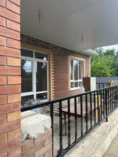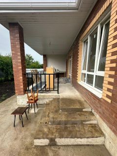 На переднем дворе забетонированы места под два автомобиля, отлита отмостка. На заднем дворе - большая терраса (18 м) с возможностью остекления. Выход на которую из кухни-гостиной с витражным остеклением. По всему периметру участка достаточно зон под клумбы, огород, баню или бассейн, зону барбекю.