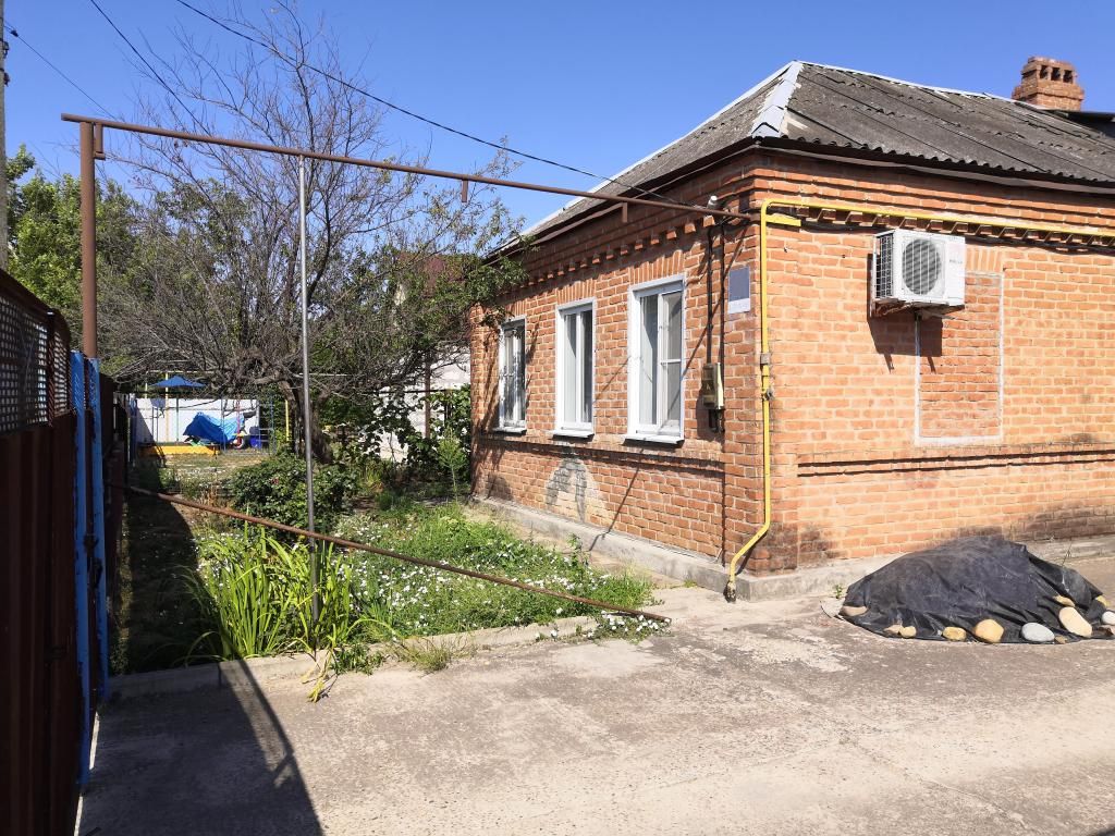 Станица Тбилисская. Спальный район, ул. Юбилейная. Жилой кирпичный дом 1970 г. п., общей площадью 77,6 кв. м. Два входа, четыре комнаты (13,3+9,1+7,7+6,8), совмещённый санузел 4,2 кв. м., прихожая 10,7. К дому пристроена просторная кухня-гостиная (6,0 4,32)25,8 кв. м.