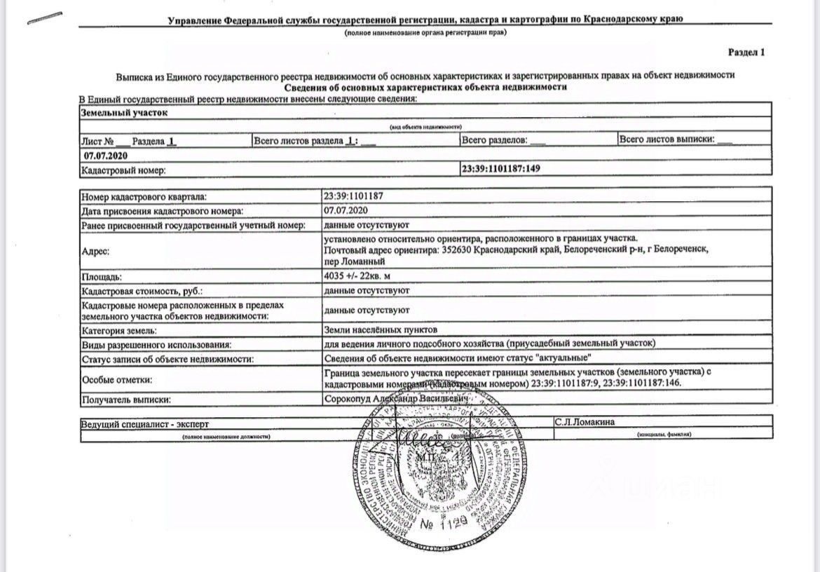 Статус участка