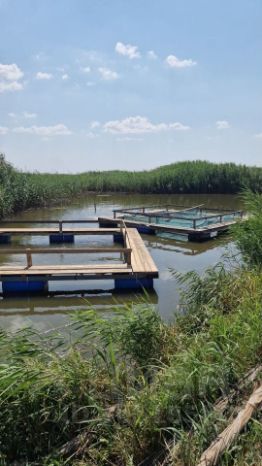 Построены понтоны с садками для подращивания малька и выращивания осетровых. Реализована система аерации. Японский компрессо хиблоу 200л/мин. Садки разных размеров с разными ячейками под разную рыбу. Очень удобно хранить, содержать товарную рыбу для продажи.