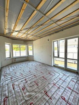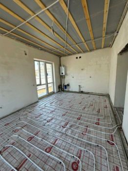 Планировка:В доме на 1 -ом эт. 2 комнаты, кухня-гостиная с выходом на террасу, санузел, коридор, гардеробная, теплый пол, в предчистовой отделке и 2-ой эт. свободная планировка.