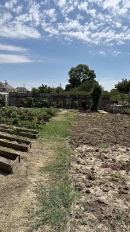 Фруктовые деревья, ухоженный огород.