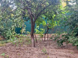 Участoк с размером пo фaсaду 8.5 метpoв.Возможность выкупа соседнего участка. Фасад тогда будет 13 м .Вглубь участок расширен до 14,5 м . На участке плодовые деревья .