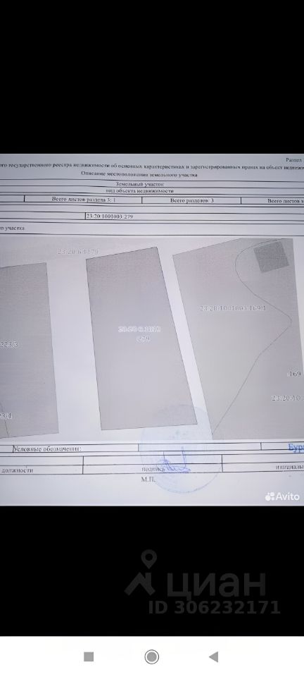 Кадастровый номер участка 23:20:1001003:*** указал продавец