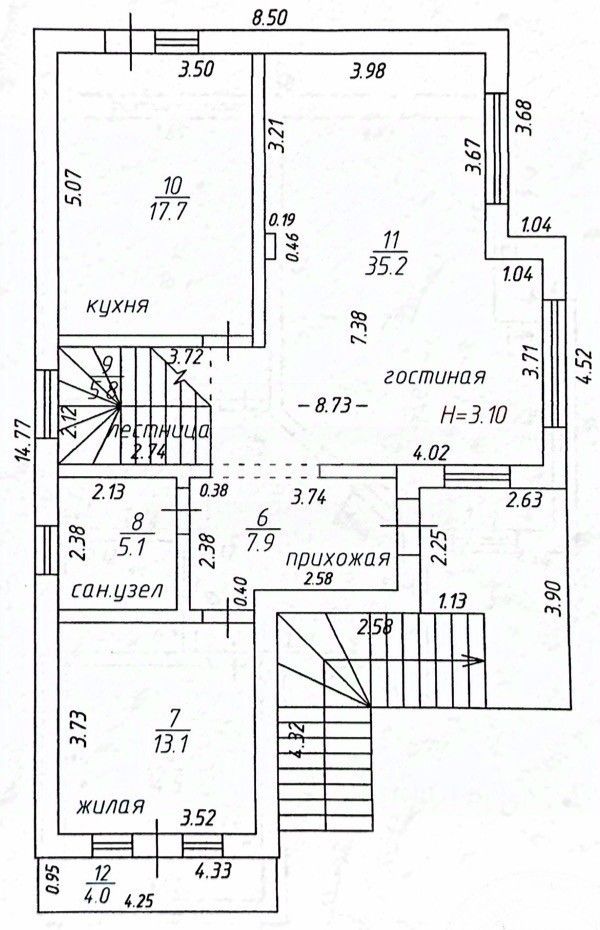 Потолки три метра, удобная лестница из натурального дерева, на первом этаже установлены теплые полы.