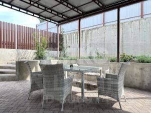 Входная группа оформлена в виде веранды с панорамными окнами, что очень удобно в ветренную или дождливую погоду.