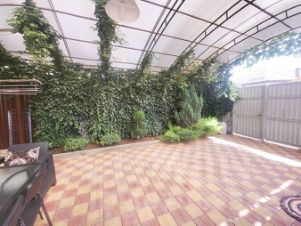 Выполнено благоустройство двора, много зеленных декоративных насаждений, зона отдыха, навес, парковка для автомобиля.