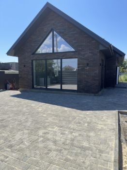 Дом построен из керамического облицовочного кирпича Браер на черном шве, что придает изысканность дому и выделяет его среди остальных, керамзитового блока 25 см и утеплителя (пенопласт) толщиной 5 см.