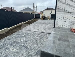 Площадка перед домом утрамбована и уложена тротуарной плиткой. В шаговой доступности продуктовые магазины и остановка общественного транспорта .В поселке есть своя средняя и спортивная школы, детские садики .