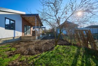 Уютный задний двор с плодовыми деревьями- идеальное место для семейного отдыха. Забор по периметру. Освещенная и отсыпанная улица , 400 метров до асфальта. Постоянно проживающие соседи.