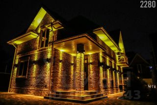 На дом установлена профессиональная архитектурная подсветка которое имеет 2 функции, подсветку здания и освещение двора.