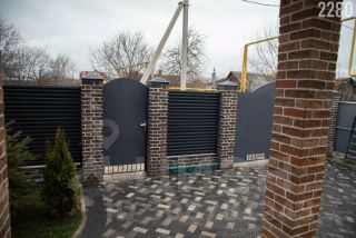 Забор фасад: горизонтальные ламели, материал "Велюр" калитка и ворота металл, электро замок Сisа.