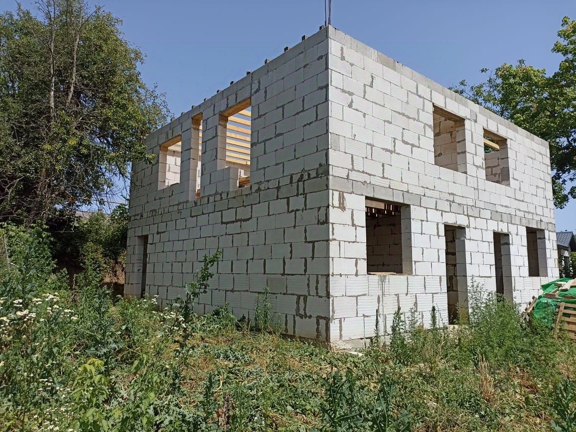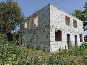 Либо в таком состоянии за обе половины 5.350.000р. Половину которую планируется продавать на большей части земли, более 4-х соток. Так же к предчитстовой отделке относится завершения балкона он же навес террасы около 30кв.м. Есть отдельный вход выход из кухни, то есть в каждой половине по два выхода. Место участка тупиковое, закрытое от дороги асфальтной, до нее 70м, с соседом отсыпали себе из старого асфальта хорошую подъездную дорогу. До школы 1км. до гипермаркетов 700м. При покупке половины во второй собираюсь проживать сам. Септик и скважина у каждой половины свои. Газовая труба в 4-х метрах от дома. Картинка в фотографиях пример навеса балкона. Площадь половины 100кв.м. Общая 200кв.м. Фундамент от 0.4м до 0.9м в нижней точке, так же 6 свай залиты глубиной 2.5м диаметр 300мм. можно строить четырех этажный дом. На фото не видно ни армапоясов, ни колон в количестве 6-ти штук. Это специально выпиливали и подрезали блок для колон что бы не промерзало. Скелет у дома железобетонный на сваях.