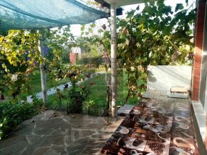 Дом расположен на земельном участке 12 соток, который размежёван на два, один 7 соток, второй 5 соток, c выходом на две улицы. Также на участке имеются: два гаража, в одном гараже имеется смотровая яма. Есть летняя кухня, погреб, душ, уборная, на участке растёт розарий, плодовые деревья, двор выложен плиткой, имеются летние беседки с мангальными зонами.