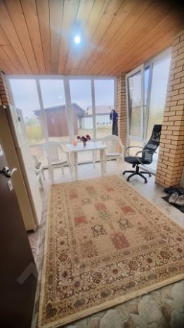 В доме два входа, две застекленные террасы. Пять жилых комнат, уютная кухня — гостиная, совмещенный сан. Узел, кладовка.