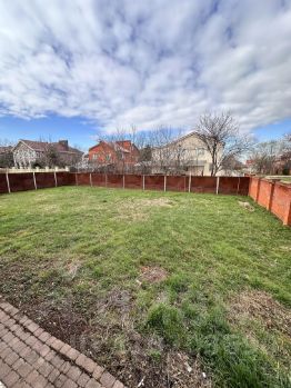 Угловой участок, кирпичный забор, двор уложен тротуарной плиткой. Чистый, незасаженный, не застроенный участок. Автоматические въездные ворота, автоматические ворота в гараж.