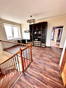 2 санузла на каждом этаже. Деревянная не громоздкая лестница с ограждением.