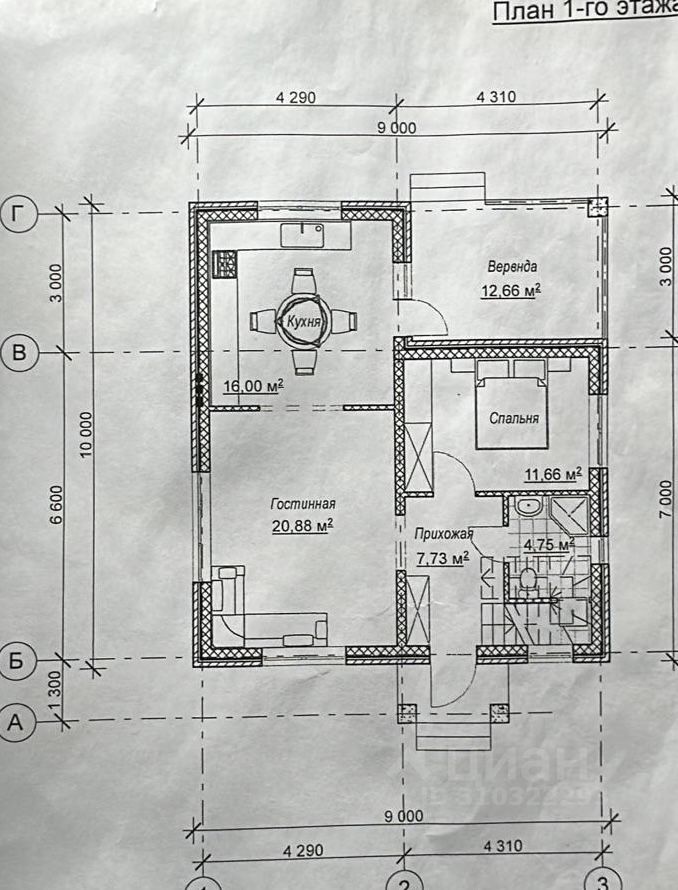 Коттедж общей площадью 130 кв.м современной планировки, комфортной для проживания семьи с детьми: холл 7,73 кв.м, гостевая спальня 11,66 кв.м, гостиная 20,88 кв.м, кухня-столовая 16 кв.м с выходом на террасу 12,66 кв.м, санузел 4,75 кв.м — первый этаж, лестница на второй этаж монолитная.