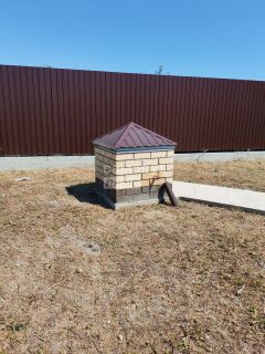 Фасадный забор из евроштакетника на ленточном фундаменте с бетонными колоннами