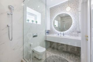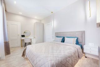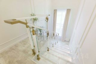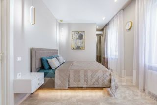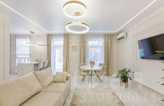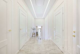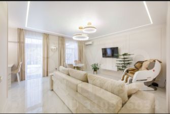 Все выполнено в бежевом цвете с багетами и золотой фурнитурой. Установлены белые стильные межкомнатные двери.Предусмотрено несколько сценариев освещения в доме.