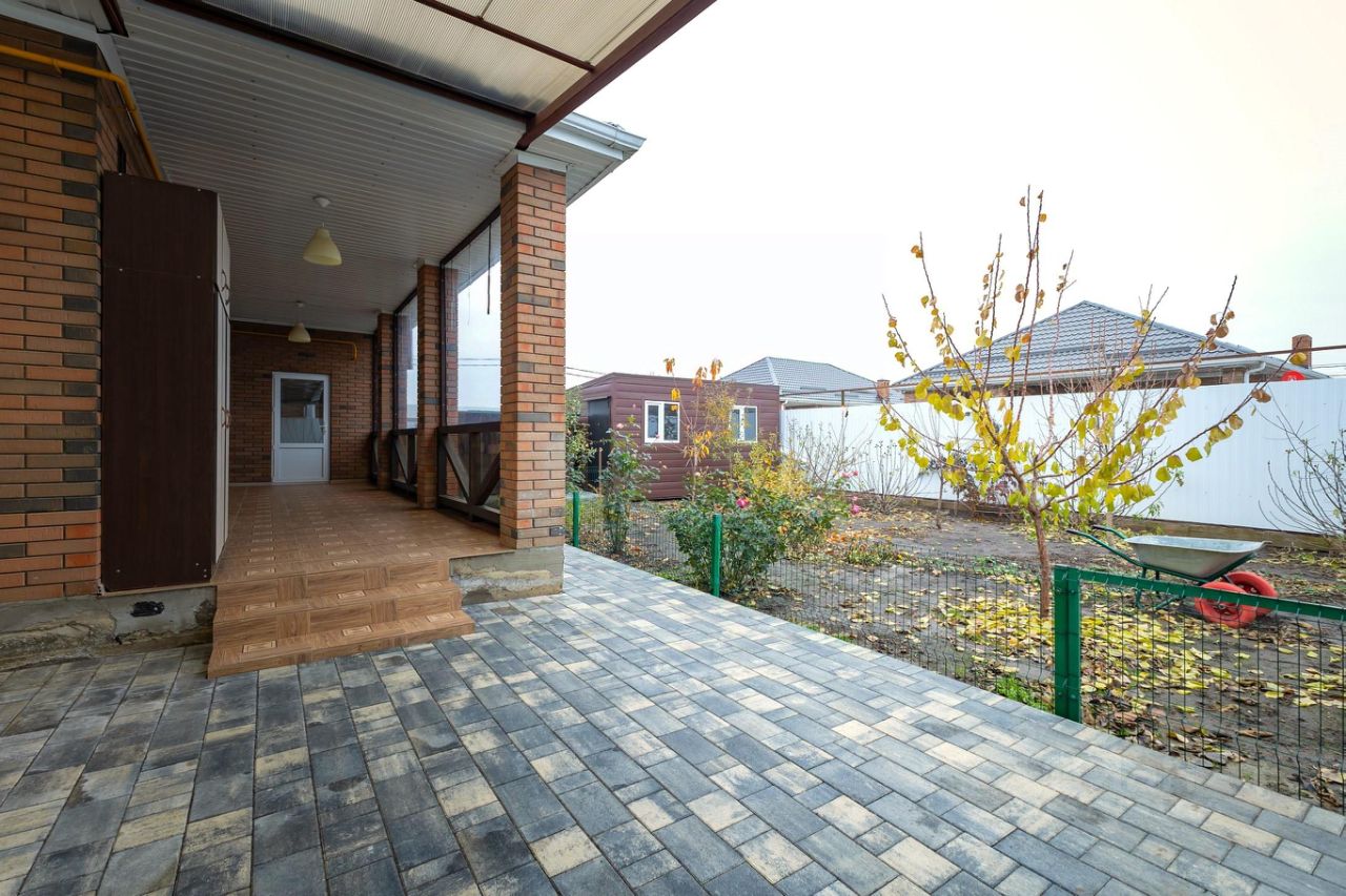 Площадь дома — 115 кв.м. Участок — 4,5 сотки. Планировка включает три спальни, просторную кухню-гостиную с выходом на террасу, совмещённый санузел, отдельную котельную. Во дворе уложена плитка, высажены плодовые деревья и декоративные растения. На участке также есть капитальная хозяйственная постройка. Дом продаётся с качественным ремонтом, мебелью, техникой и садовым инвентарём.