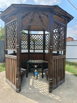 Во дворе оборудована кухня с обеденным залом и мангальная зона.
