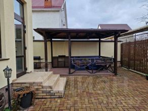 По периметру участка забор с автоматическими воротами.Благоустроенный двор, вымощенный плиткой, автополив.Во дворе место на два авто.Зона барбекю, есть уютная беседка.